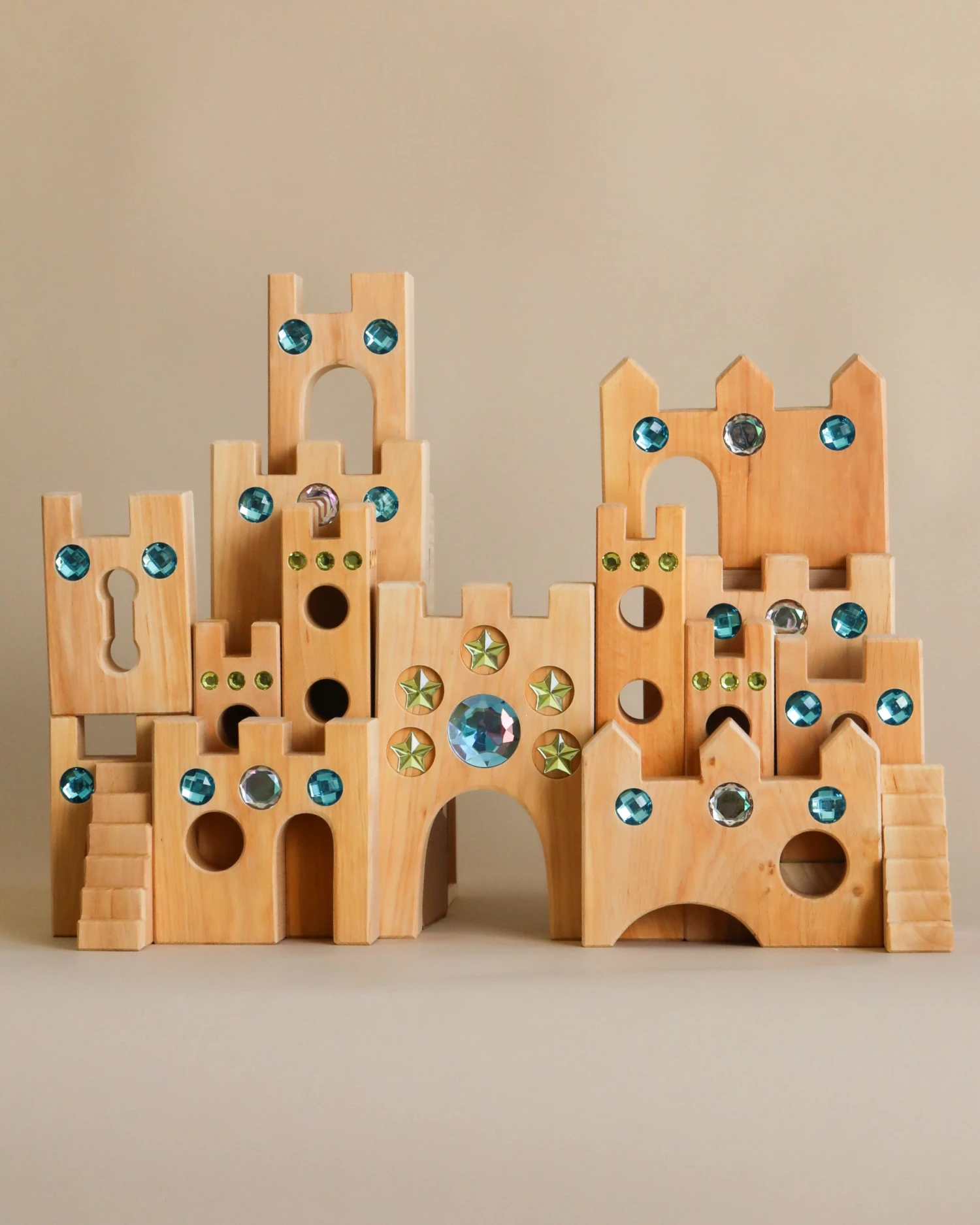 The Fairytale Castle set features a collection of sturdy wooden blocks, arches, and towers that can be assembled in endless combinations. With its vibrant colors and intricate detailing, this castle captures the essence of a whimsical fairytale setting, ready to be brought to life by your child’s imagination.