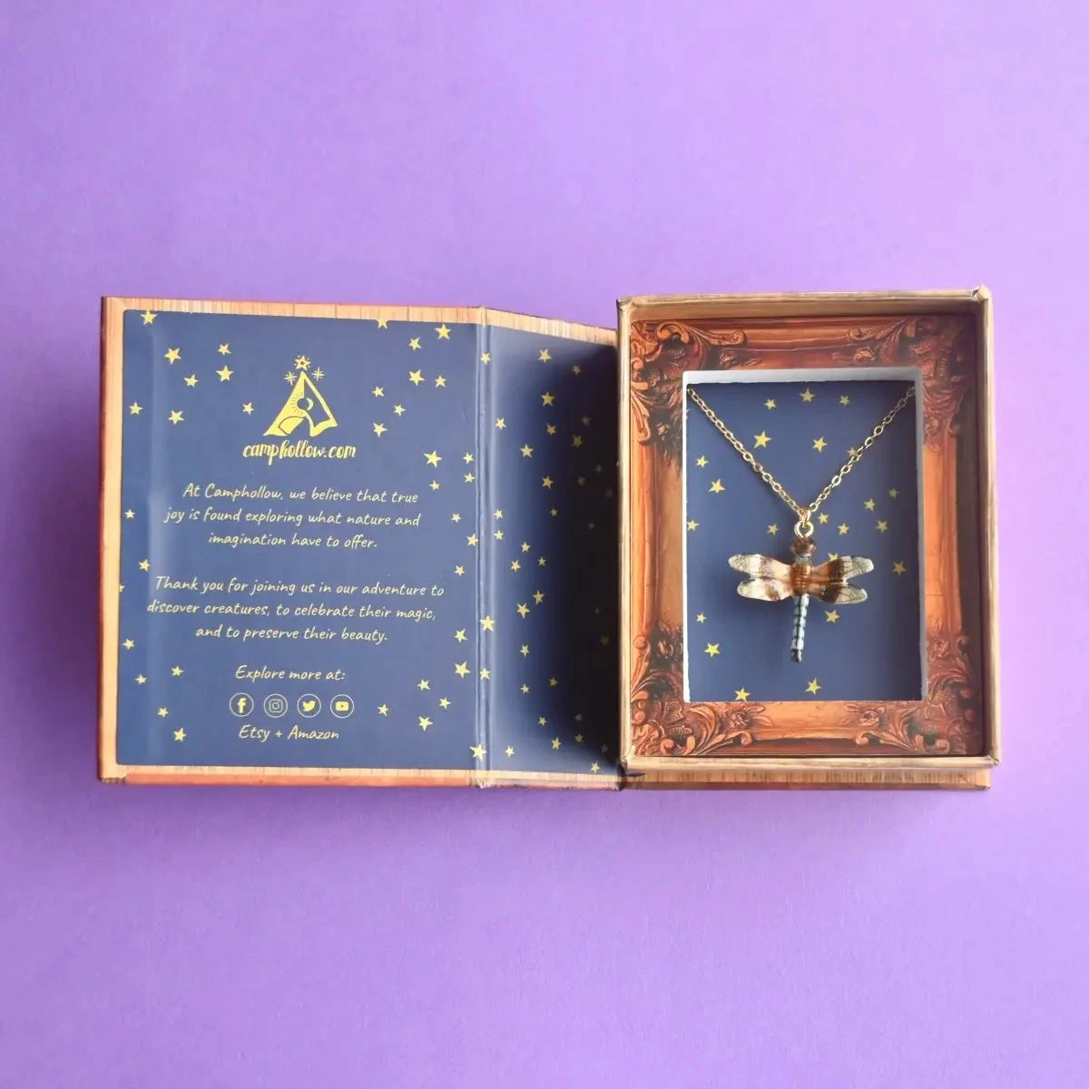 Embark on a magical journey with our limited-edition Blue-Tailed Dragonfly Necklace! This handcrafted porcelain pendant captures the ethereal beauty of the dragonfly, complete with shimmering wings and a delicate blue tail that’s nothing short of enchanting. Strung on a delicate chain, this necklace is a versatile and captivating addition to any ensemble, from casual daywear to elegant evening attire. Due to the handmade nature of this product, slight variations in color and design may occur, making each piece truly one-of-a-kind. And when it comes to upkeep, a quick wipe with a damp cloth keeps your pendant looking as mesmerizing as a moonlit pond. Perfect for nature enthusiasts, dreamers, or anyone who appreciates the blend of fashion, artistry, and a touch of whimsy.