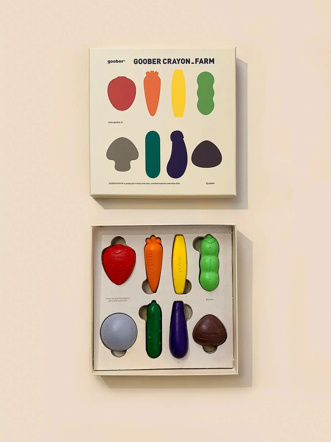 These 8 crayons come in shapes and colors of strawberry, carrot, banana, pea, cucumber, egg plant, chestnut and mushroom in a beautifully designed storage box.