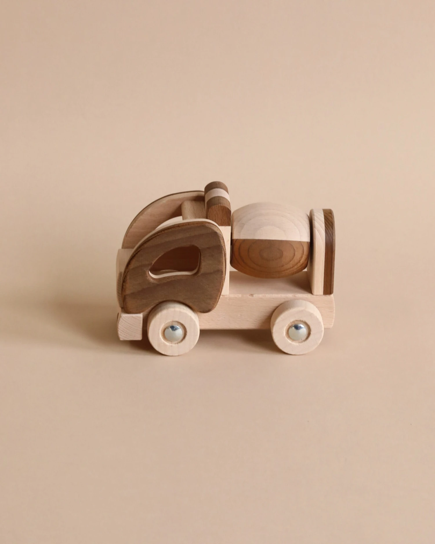 Handmade in Romania from beech wood, this cement mixer is a must-have for every construction vehicle loving little one.Â