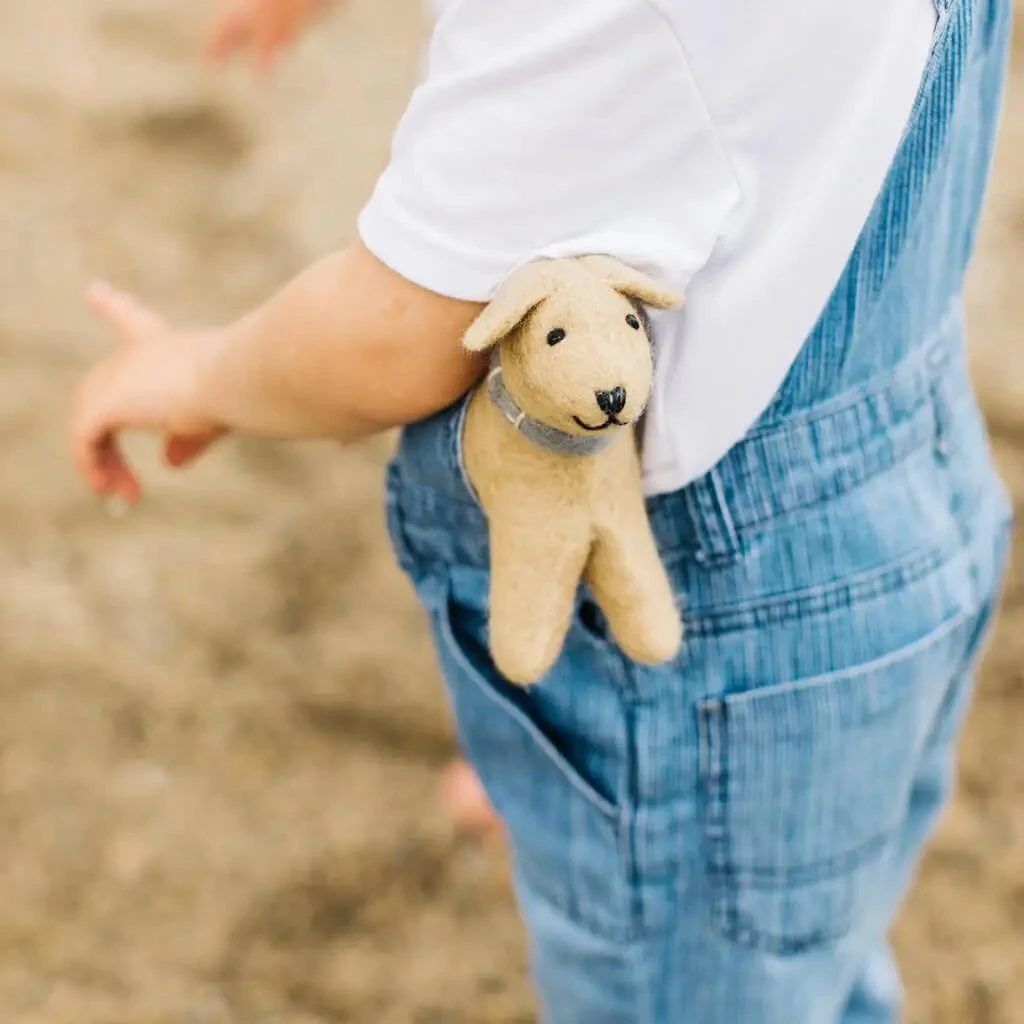 Adorably cuddly, this curious, but well-behaved golden retriever puppy is up for anything. Beautifully hand-crafted by a village of artisans in the foothills of the Himalayas, each piece is uniquely stitched with natural wool. Ready for a world of adventure, a thoughtful gift for anyone, yourself included. Playful as a toy, adorably modern as home decor. The perfect keepsake for kids of all ages. Treat a new mom to a sweet gift for a hip nursery.