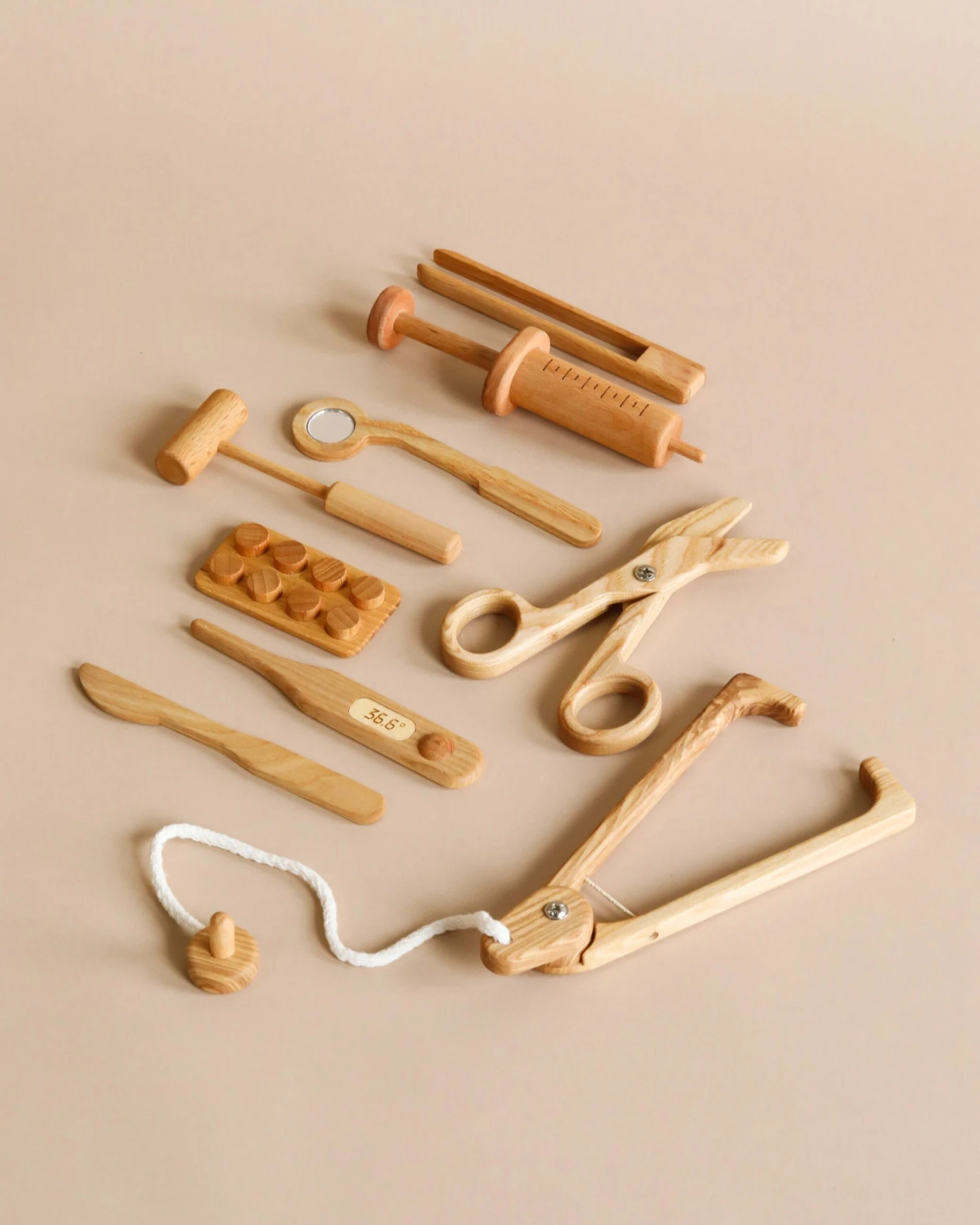 Handmade in Russia, this 10 piece medical kit is the perfect imaginative play toy for future doctors and nurses.