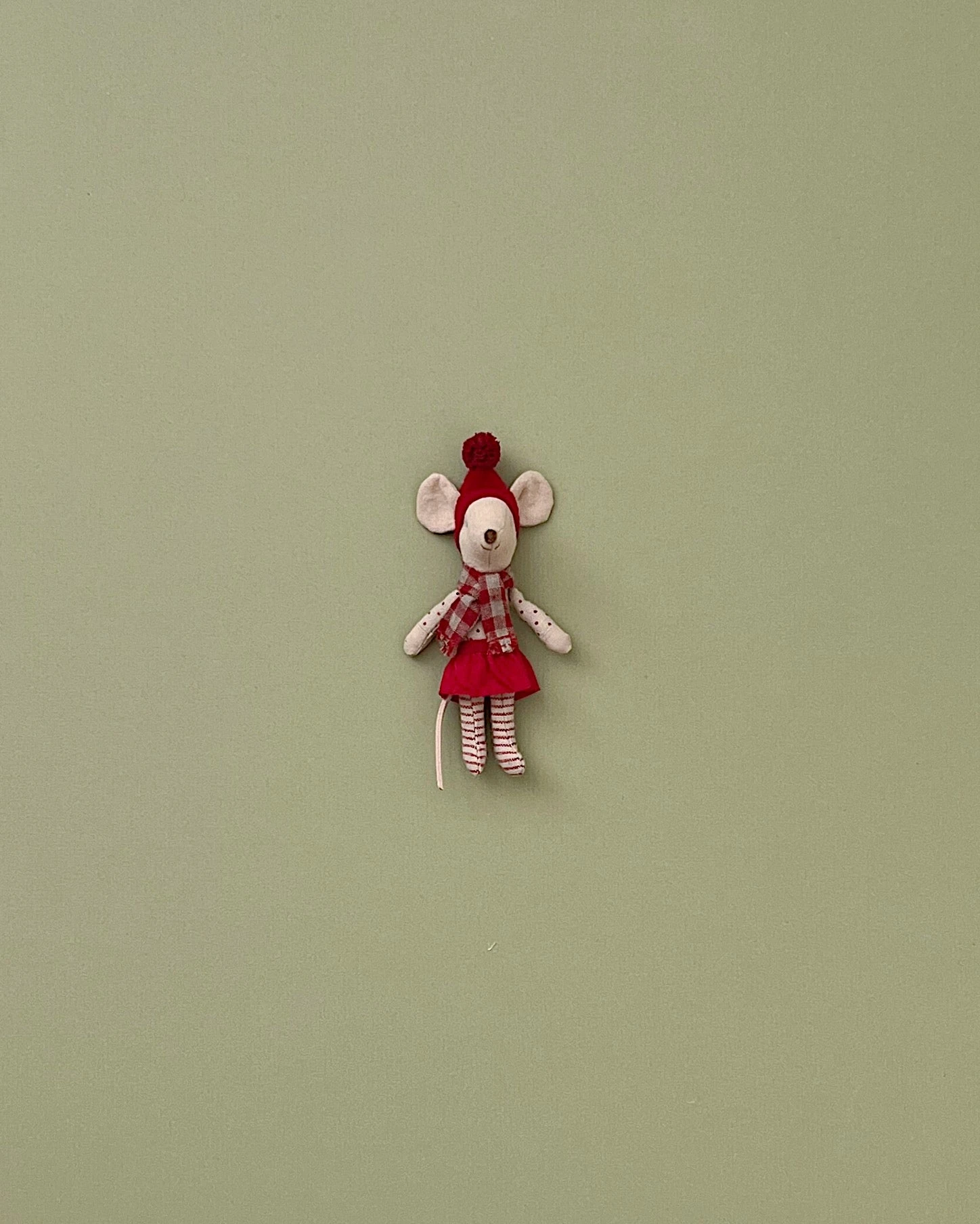 A sweet and adorable small friend, nicely dressed up for Christmas. The mouse fits perfectly into the Gingerbread house.