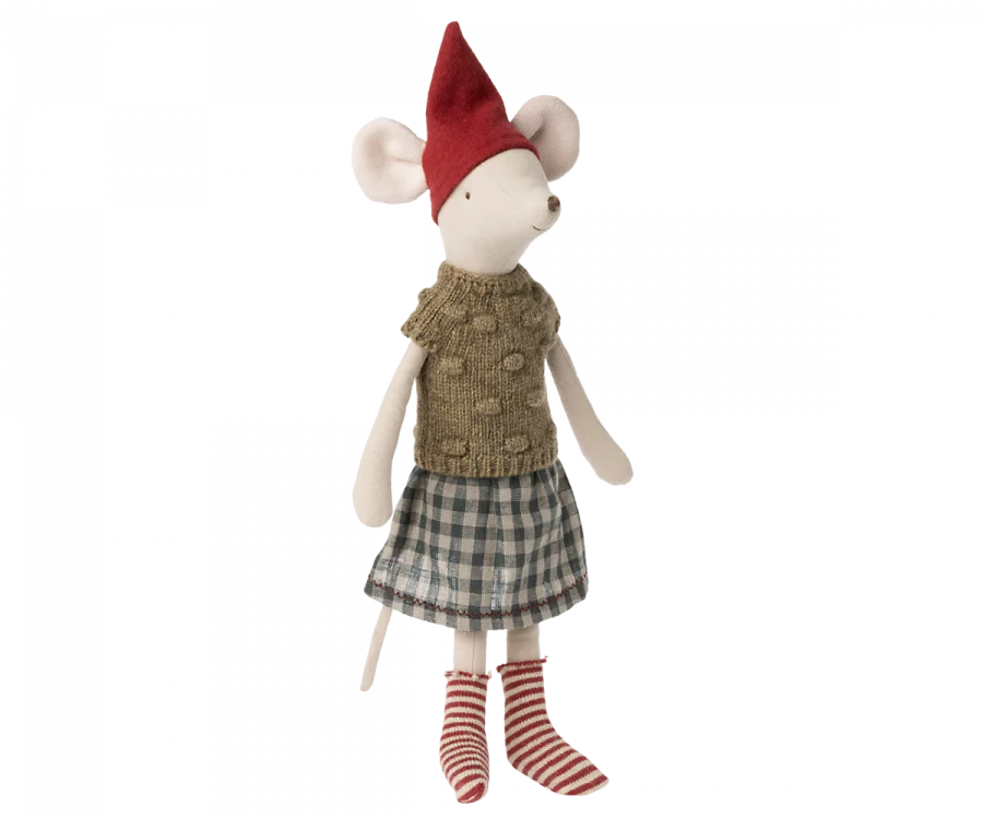 A medium size mouse dressed in cozy Christmas clothes ready to celebrate the wonderful days of Christmas.