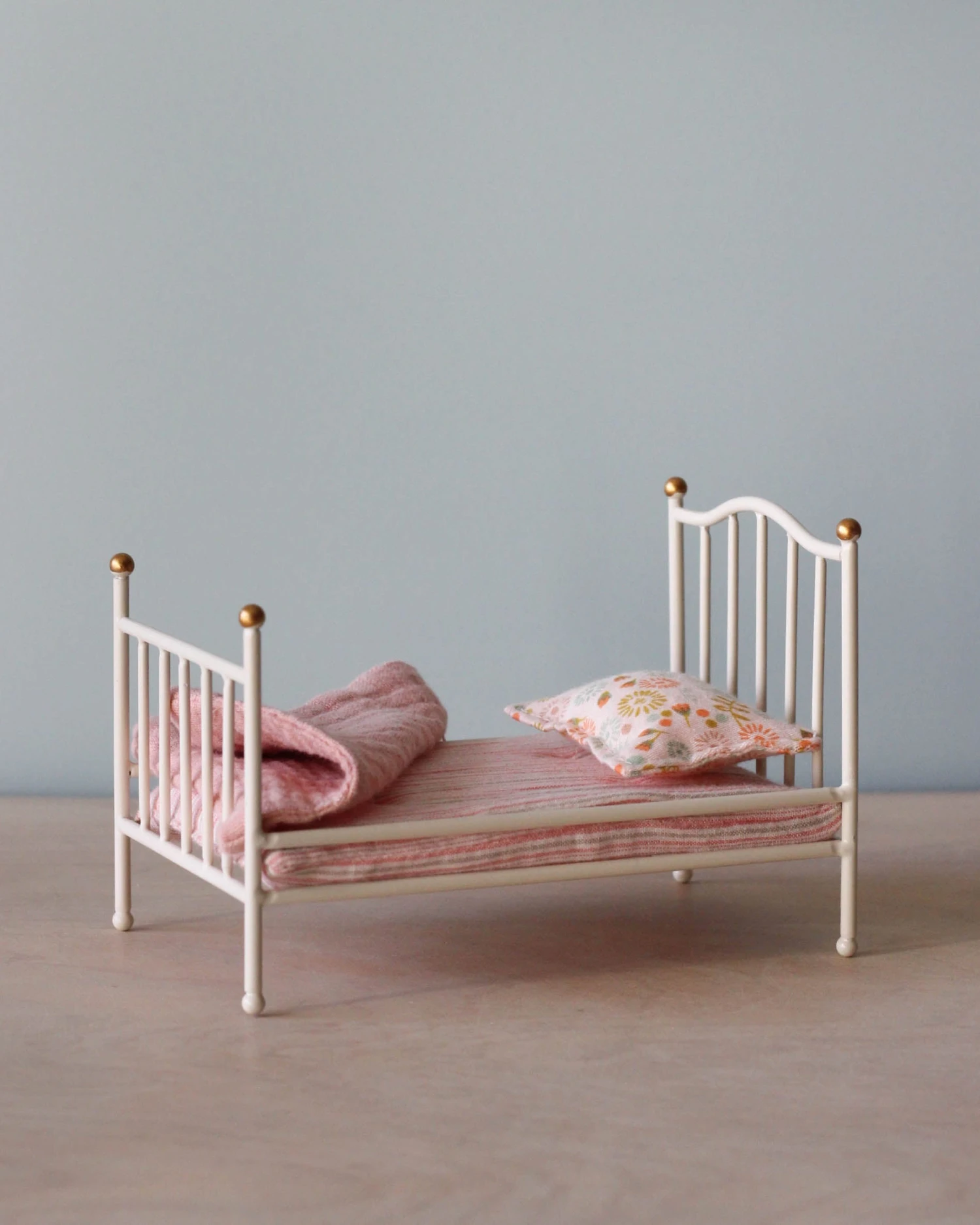 Let your Maileg friends have a sleep-over in the vintage metal bed. It comes with blanket, mattress and pillow.
