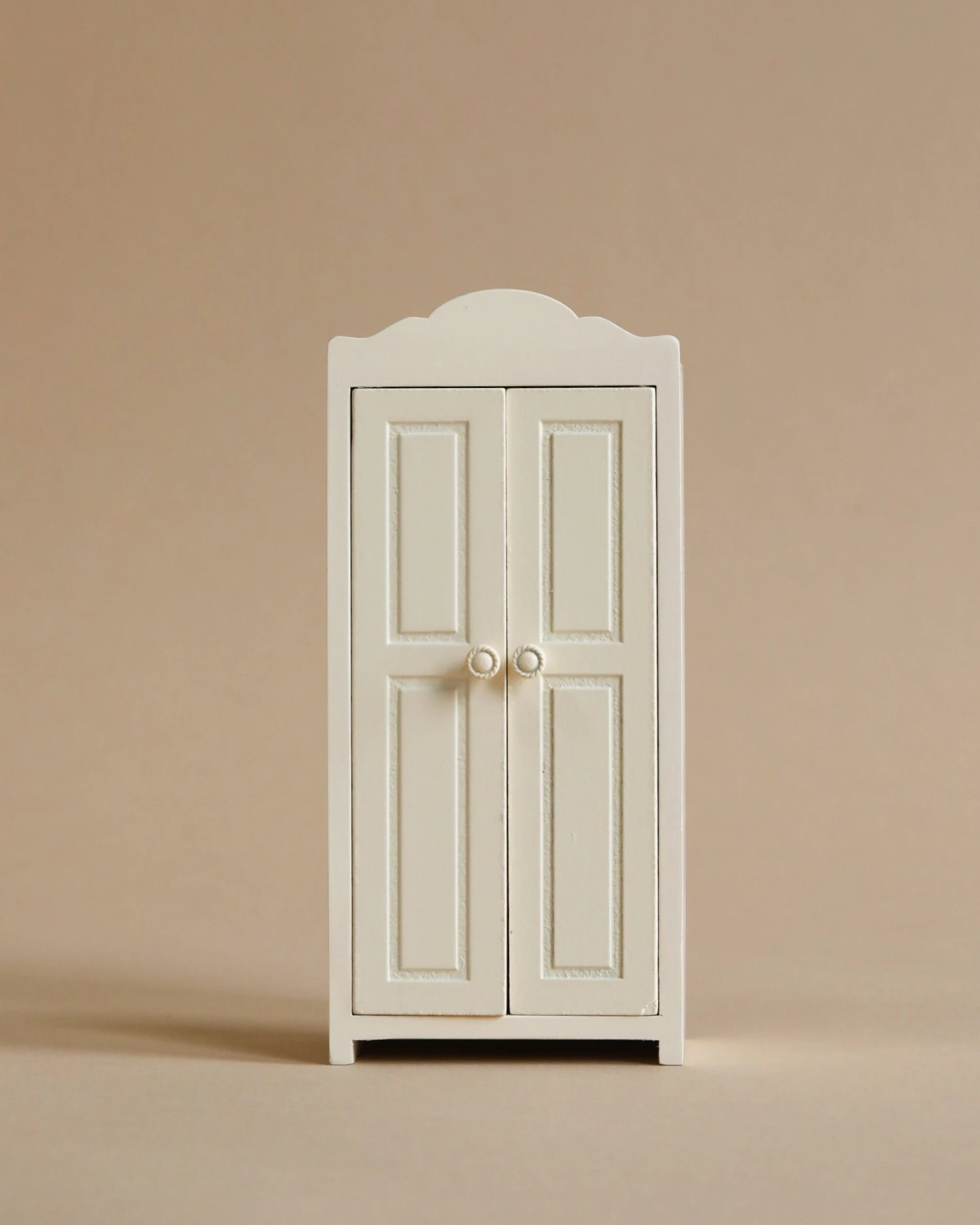A small closet made of FSC wood. It helps the mice family organizing their wardrobe. The closet comes with 3 golden hangers.