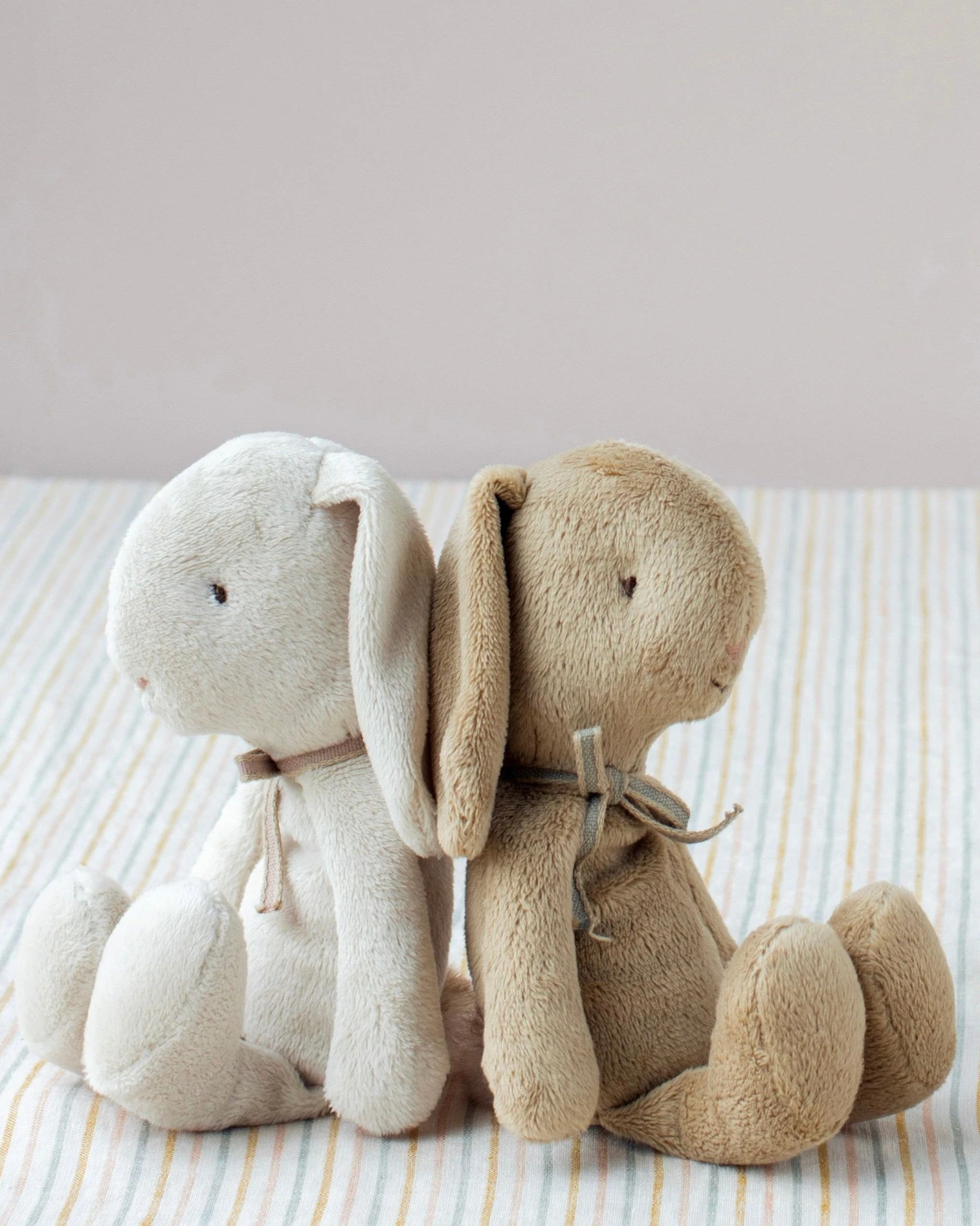 A small soft bunny perfectly made for little hands. Our soft Brown Bunny has a colored bow around the neck, and makes the perfect baby shower gift or “welcome to the world” gift!