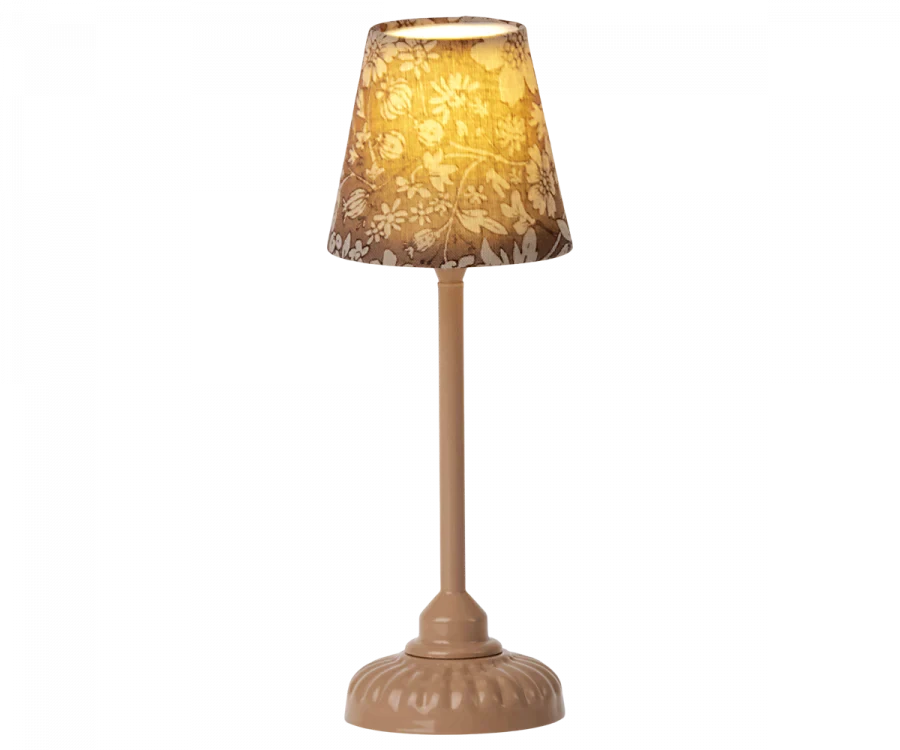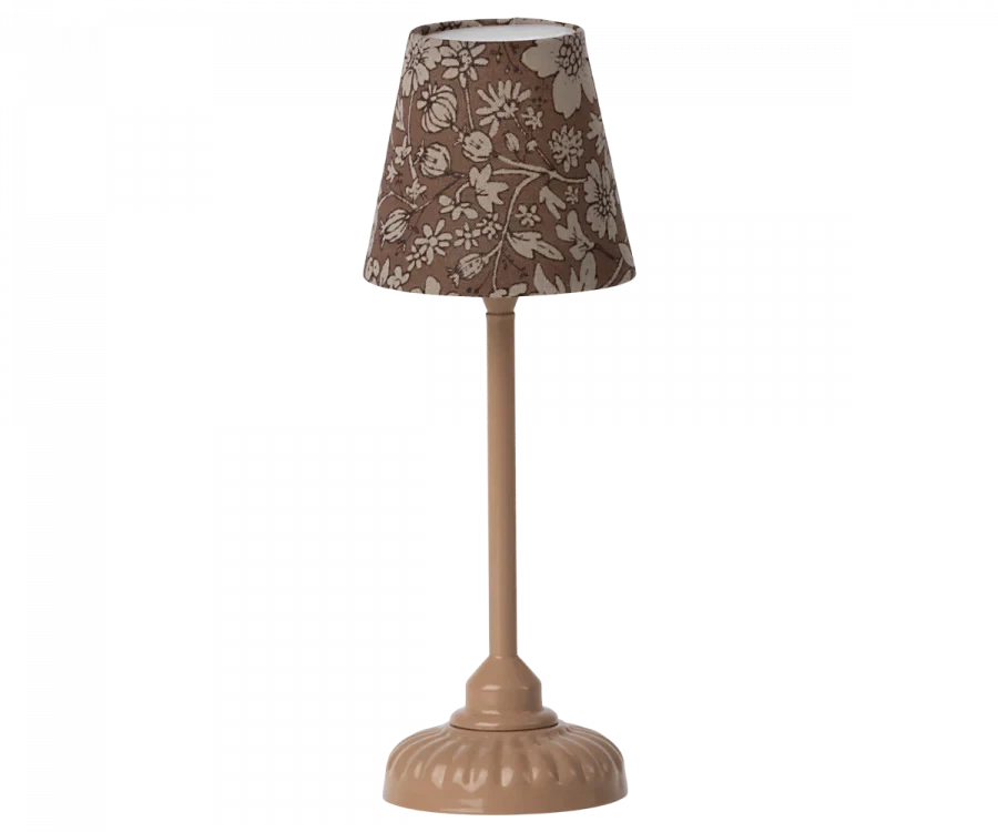 The beautiful Maileg vintage floor lamp is a must-have. The lamp will light up the room with a soft tone – remember to turn off the light when our friends go to bed. The battery can be changed by an adult. Fits the Maileg Castle perfectly.