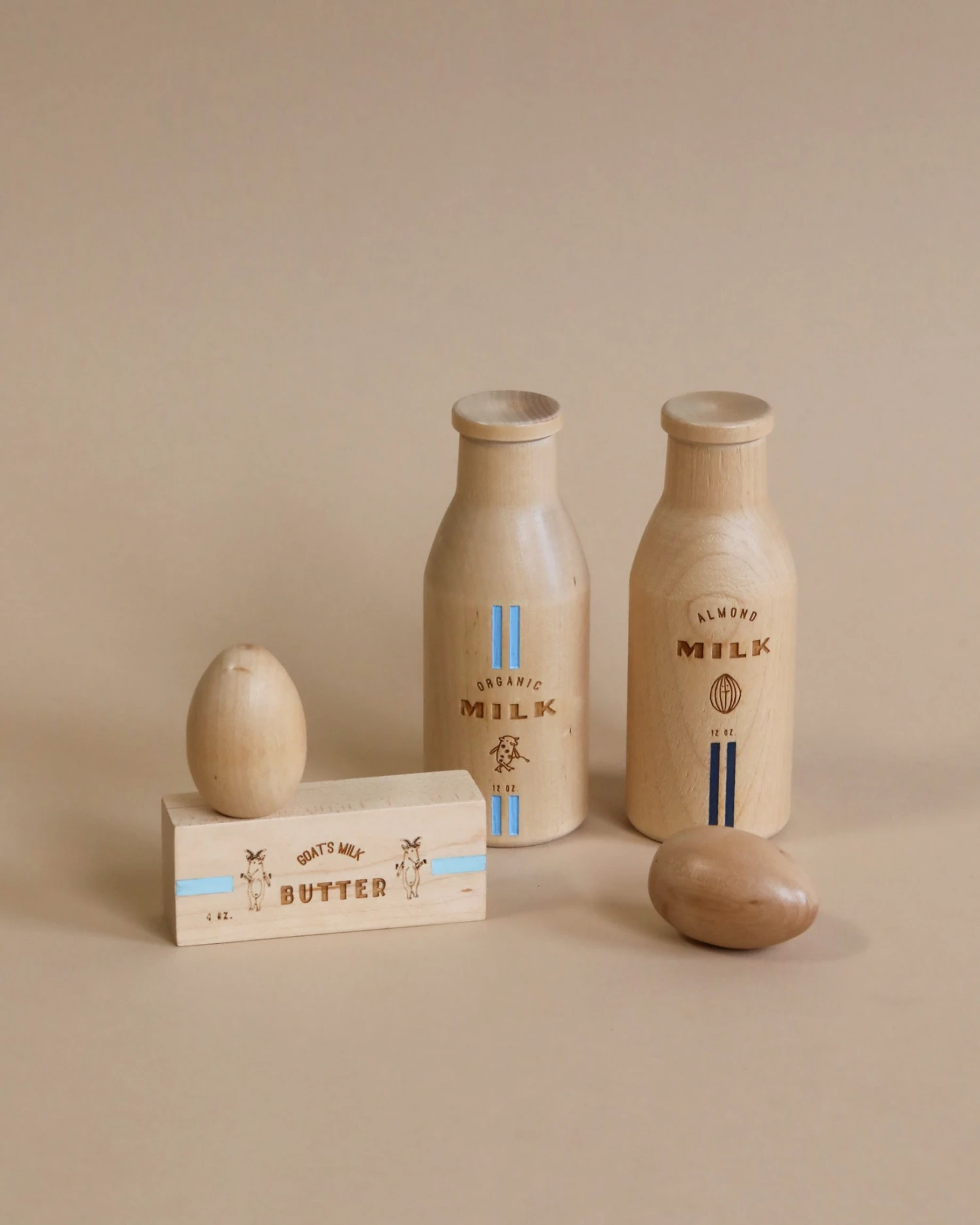 Refrigerator staples that are so cute you might just want to leave them out! Each set includes Organic Milk, Almond Milk, Goat’s Milk Butter, and 2 Free-Range Eggs and comes in a beautiful cotton drawstring bag.