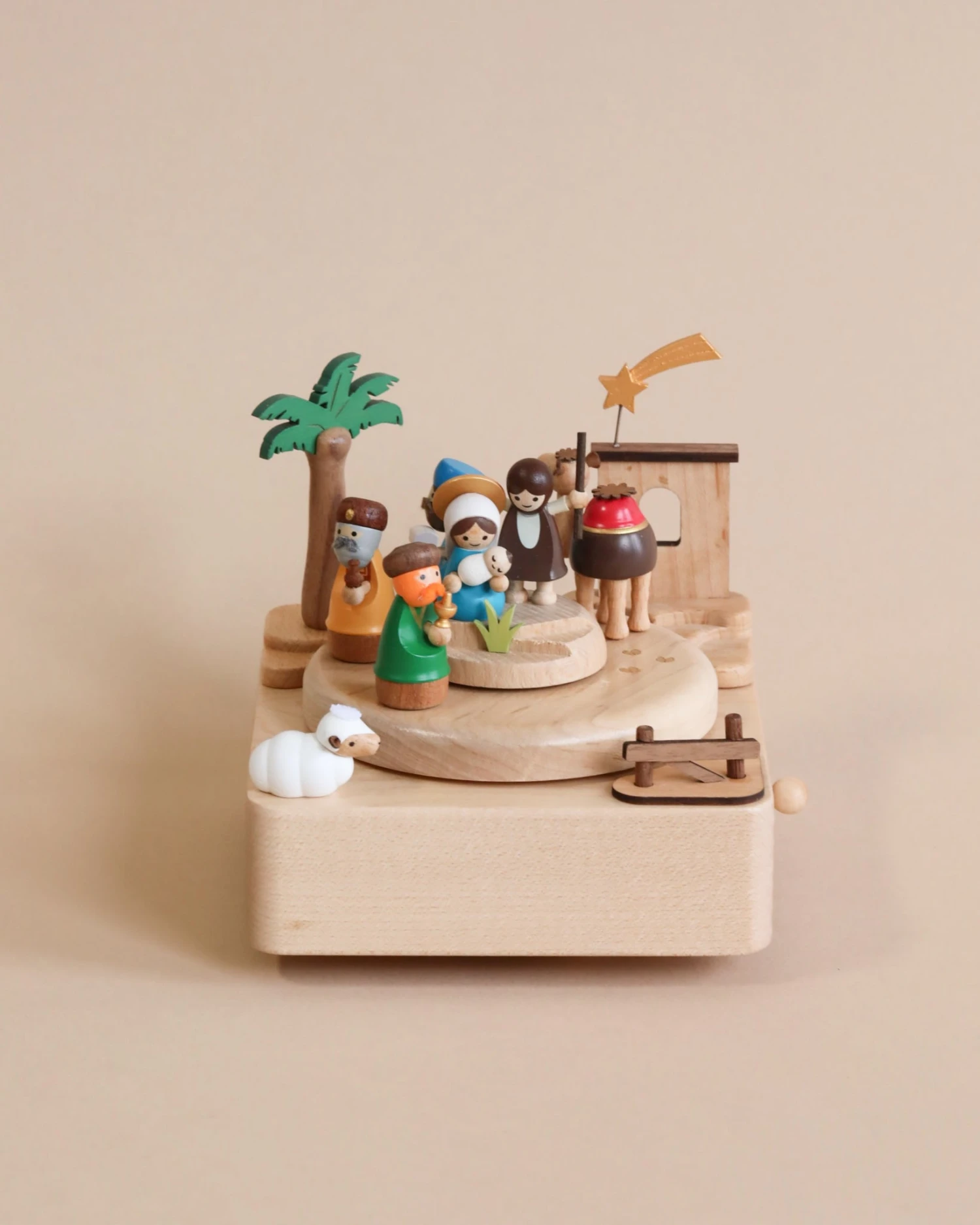 Combining nostalgia and a classic design, this hand cranked music box makes a great addition to any any room as a decoration on a shelf. The on/off toggle allows the music to start and turn off easily, while the clockwork mechanism enables the train to go around while the music is playing.