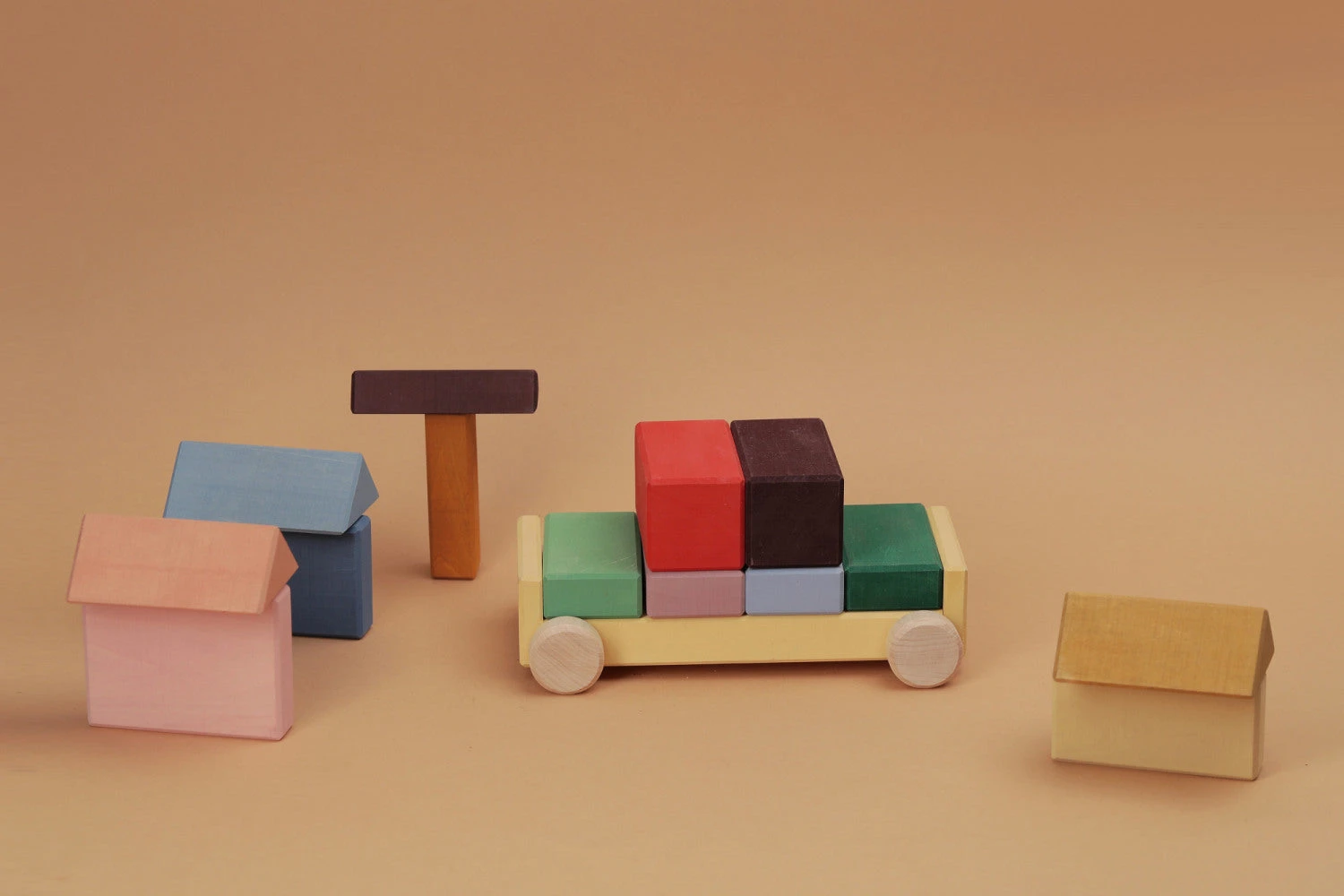 The Vehicle Blocks is made of solid wood. The wheels are coated with linseed oil, the rest of the parts are painted with eco-friendly water-based paint.