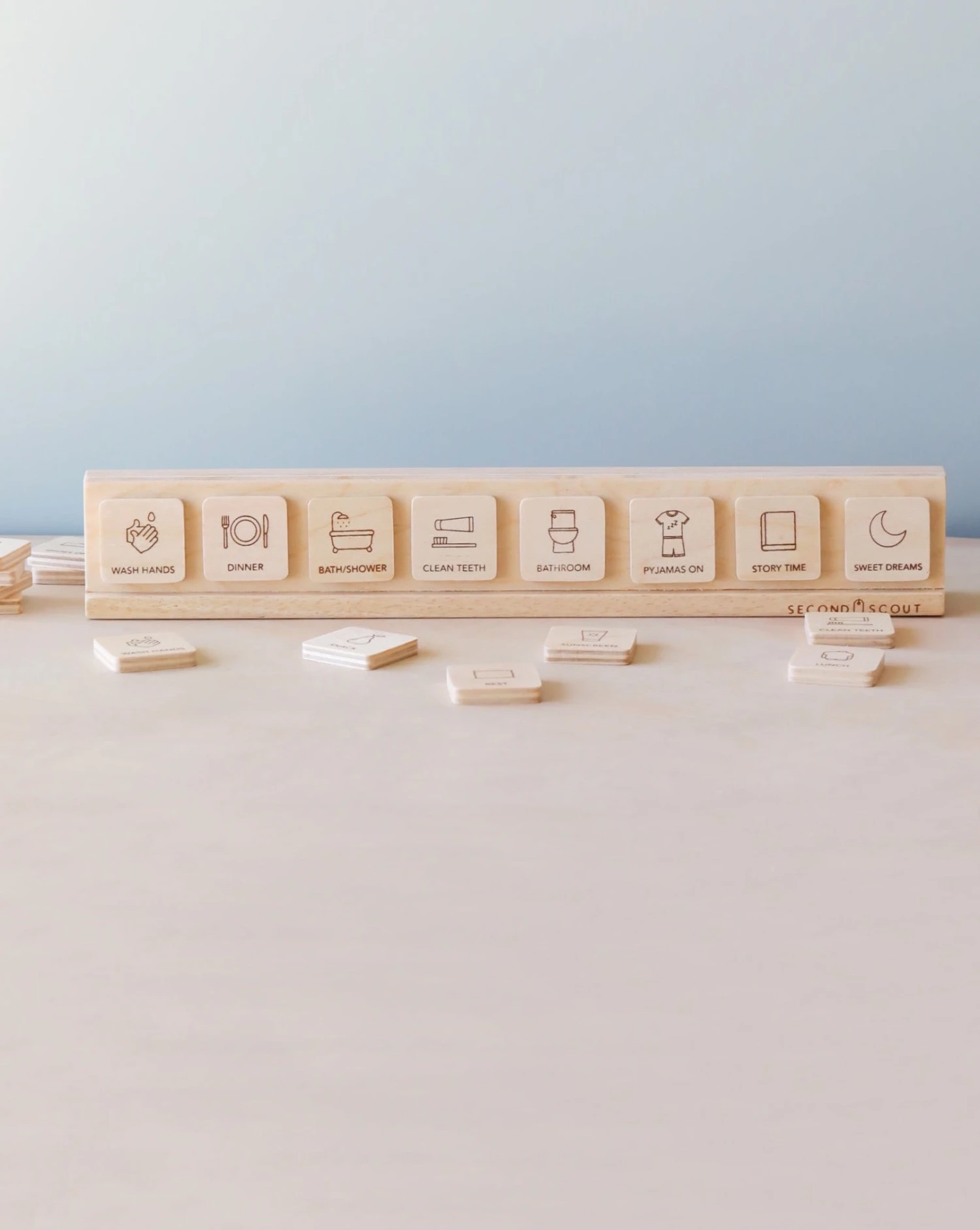 Afternoon/night tiles – rest, snack, wash hands, dinner, bath/shower, pyjamas, clean teeth, bathroom, story time, sweet dreams