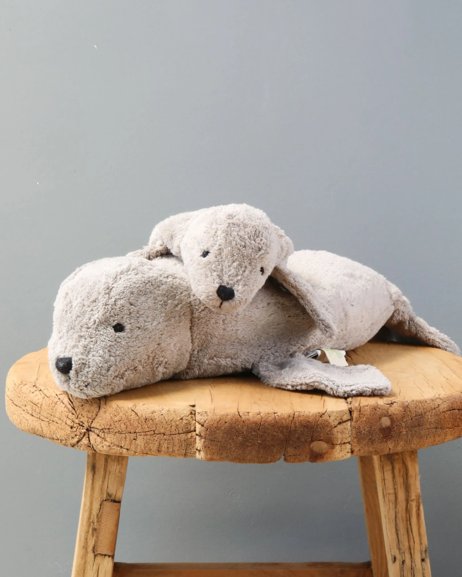 Handmade in Germany by Senger Naturwelt, this cuddly seal doubles as a gentle warming pillow. The head and feet are filled with lamb wool and the outer layer is made with organically grown cotton. The tummy features a removable bag filled with cherrystones. The bag can be warmed up in the oven at low temperature (do not microwave) or put it in the freezer to cool special parts of your body.